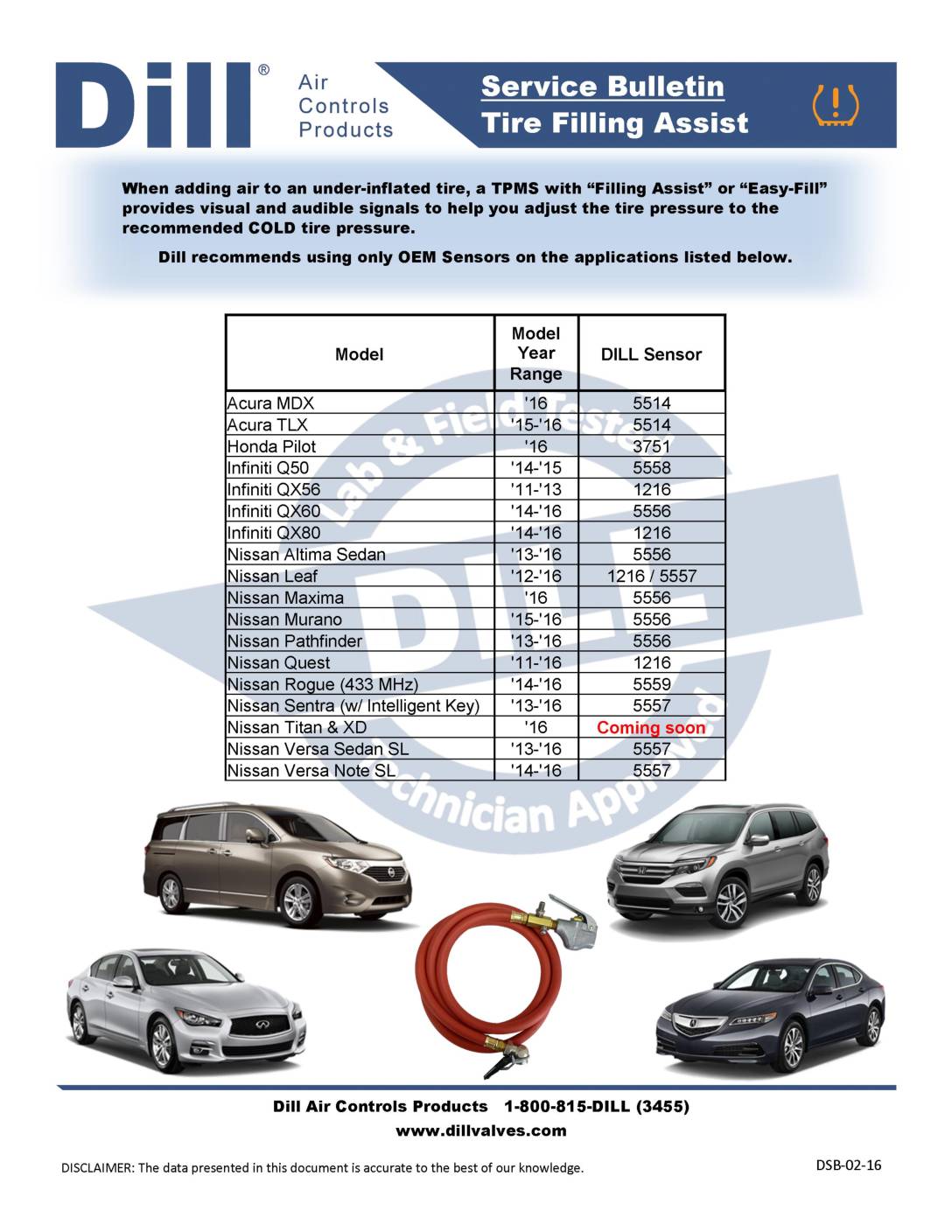 Use OEM Sensors Only on These Vehicles with Tire Fill Assist