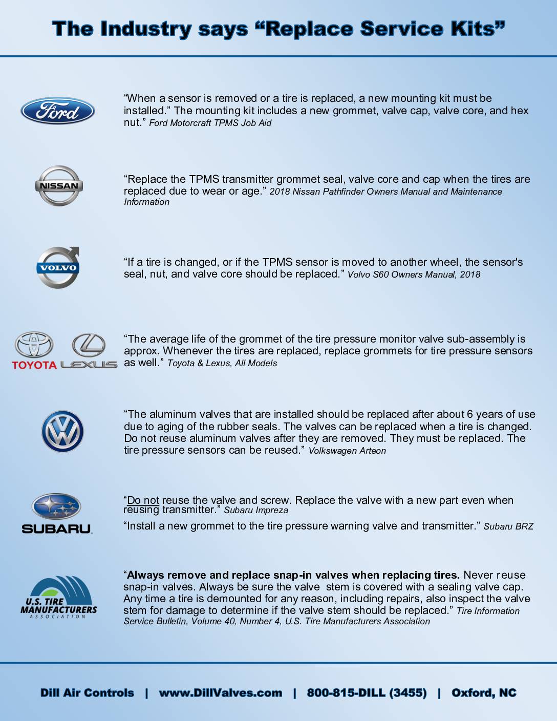 Service Manuals from Car Makers Support TPMS Kit Replacement