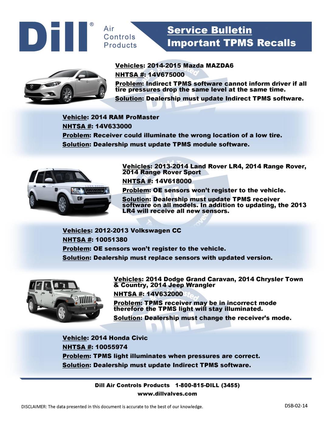 2014 TPMS OEM Recalls - Mazda, VW, LR, RAM, Civic, Grand Caravan